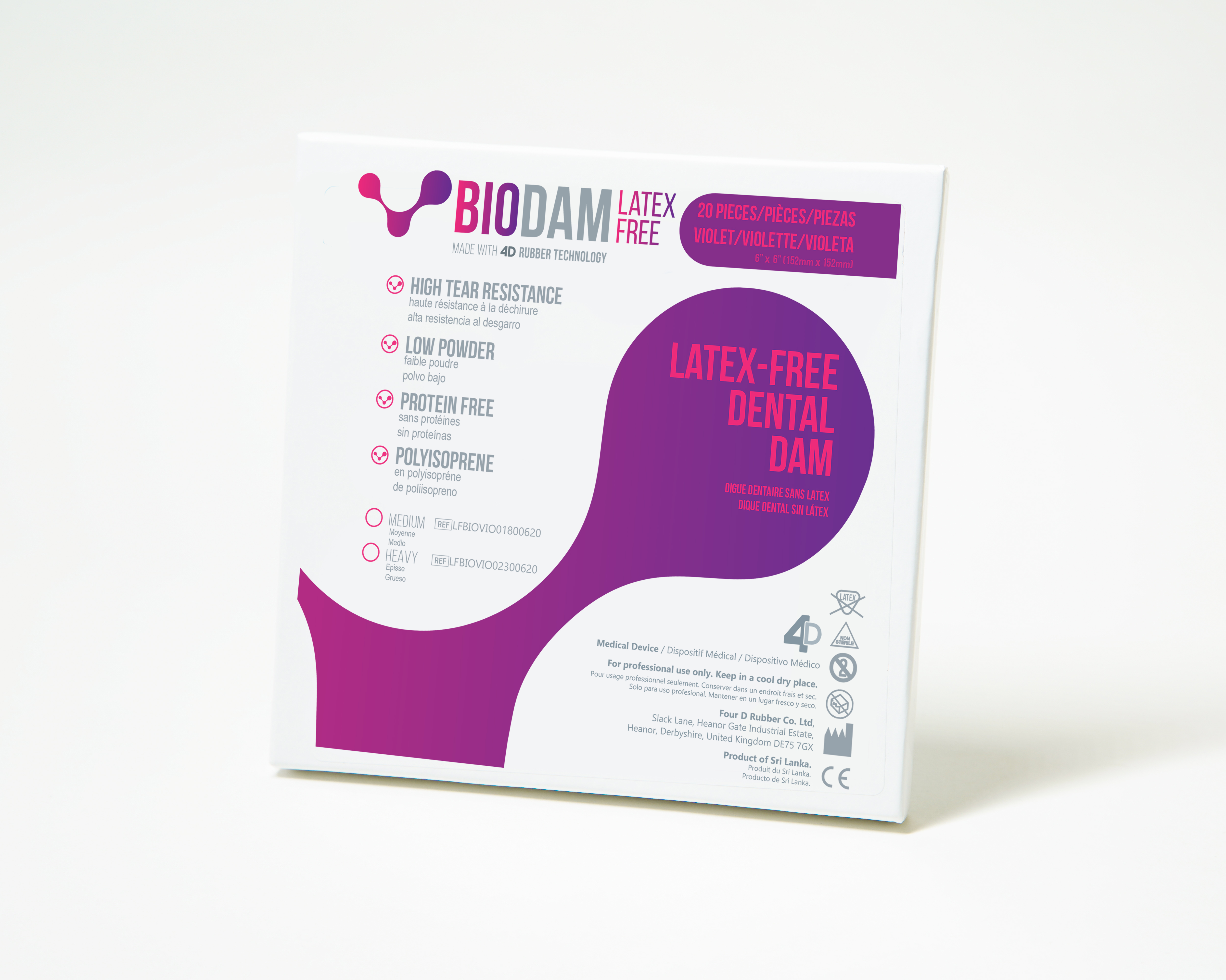 Four D Rubber is a manufacturer of natural and synthetic precision rubber sheeting and products. Our material is used in product applications such as dental dams, exercise bands, food processing equipment, as well as clothing. We have manufacturing facilities in the United Kingdom and Sri Lanka.